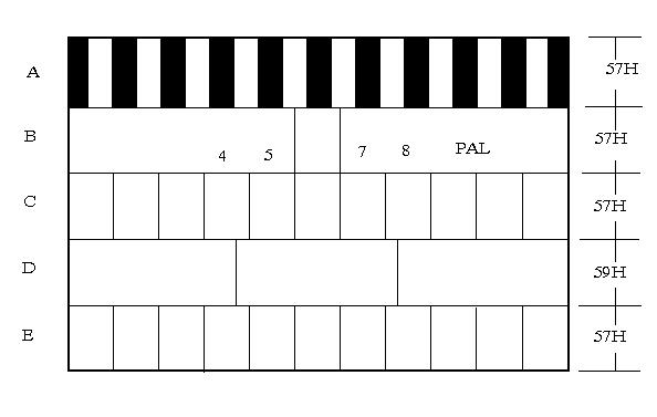 在第1场和第3场,起始半行为A信号。在第2场和第4场,结束半行为信号。 | |